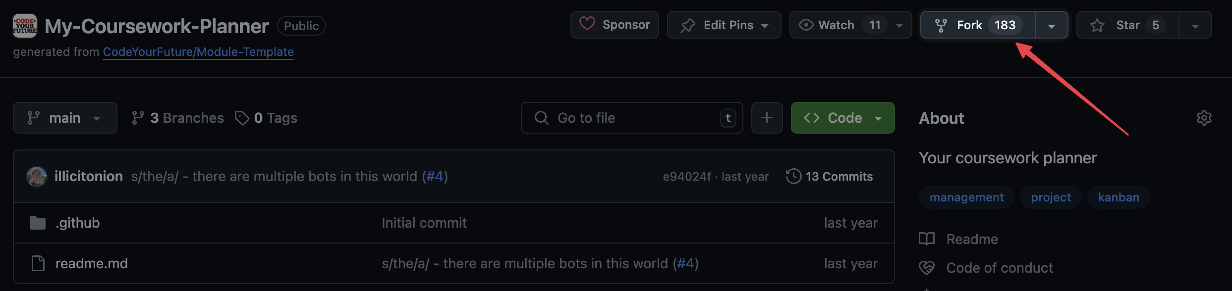 This is how you will plan and manage your coursework at CYF. You will add all your work as issues to your fork of this repository, and then use a project board to manage your work. This is broadly how all technical projects are managed, so you will need lots of practice. Get started today.